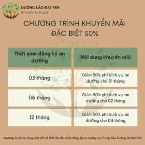Chương trình khuyến mãi GIẢM 50% PHÍ DỊCH VỤ DƯỠNG LÃO TRỌN GÓI Áp dụng trong năm 2024 Đây là cơ hội tuyệt vời để Người cao tuổi trải nghiệm dịch…